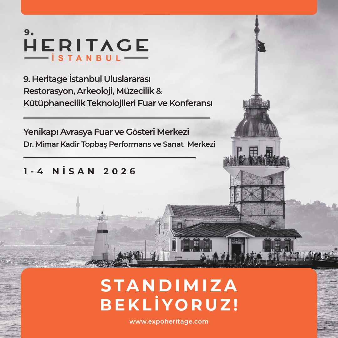 Tarihleri Not Edin: 1-4 Nisan 2026 Yenikapı Avrasya Fuar ve Gösteri Merkezindeyiz. 9. Heritage İstanbul Uluslararası Restorasyon, Arkeoloji, Müzecilik & Kütüphanecilik Teknolojileri Fuar ve Konferansı.
